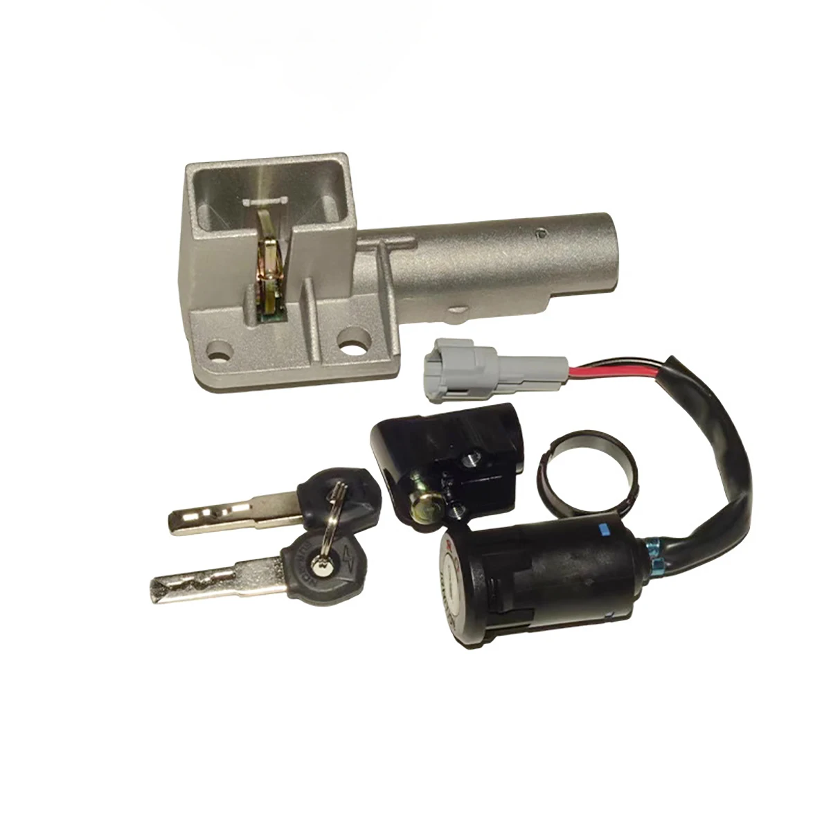 Includes keys. ignition switch. and battery compartment lock.