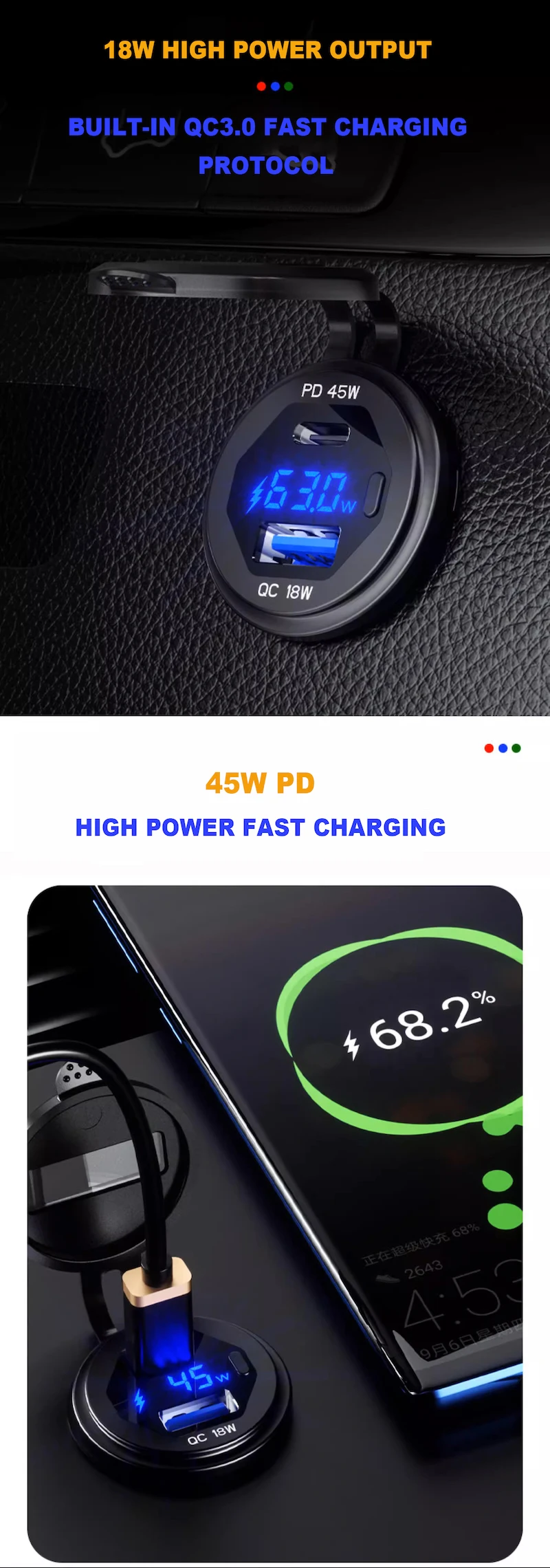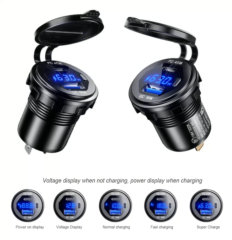 Dual Port High Power Output. 18W USB-C /45W PD High Power